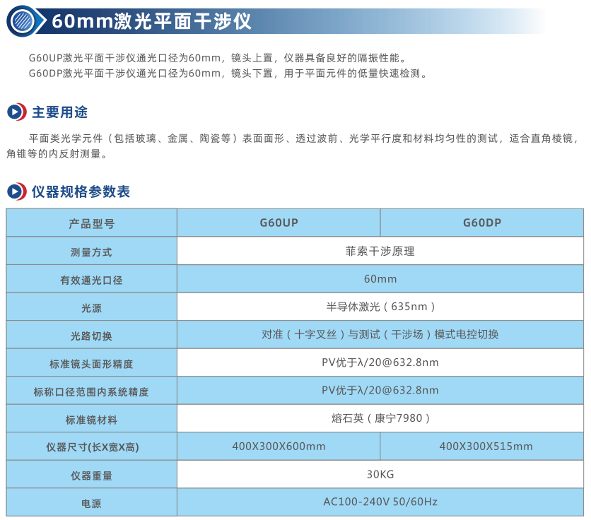 G60DP激光平面干涉仪通光口径为60mm,镜头下置,用于平面元件的低量快速检测。