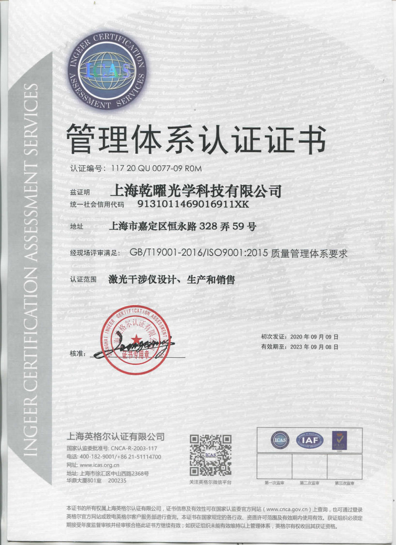 质量管理体系认证证书