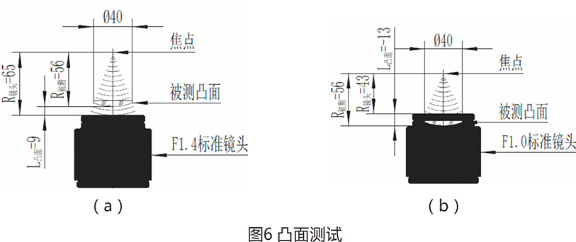 如图6(a)使用F1.4镜头正好实现全口径测试;如图6(b),如果选用F1.0镜头,理论上被测镜片需要进入镜头内部,实际不可能实现。