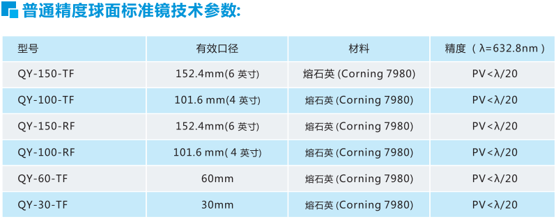 乾曜光学提供普通精度的平面标准镜和超精密平面标准镜,均包含平面透射标准镜和平面反射标准镜。 有效口径有150mm(6英寸),100mm(4英寸), 60mm,30mm,150mm和100mm口径镜头与Zygo 通用,60mm和30mm口径镜头与富士通用。