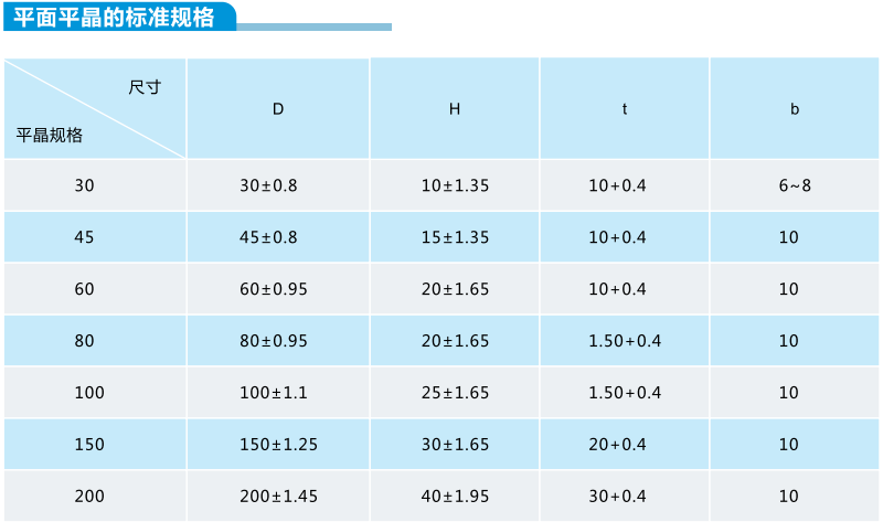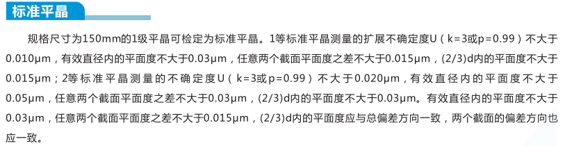 乾曜光学提供全系列符合国家计量检定规程JJG28-2000的工作平晶和标准平晶。 用途:适用于光学加工厂、厂矿企业计量室、精密加工车间、阀门密封面现场检测使用,也适用于高等院校、科学研究等单位做平面度等检测。