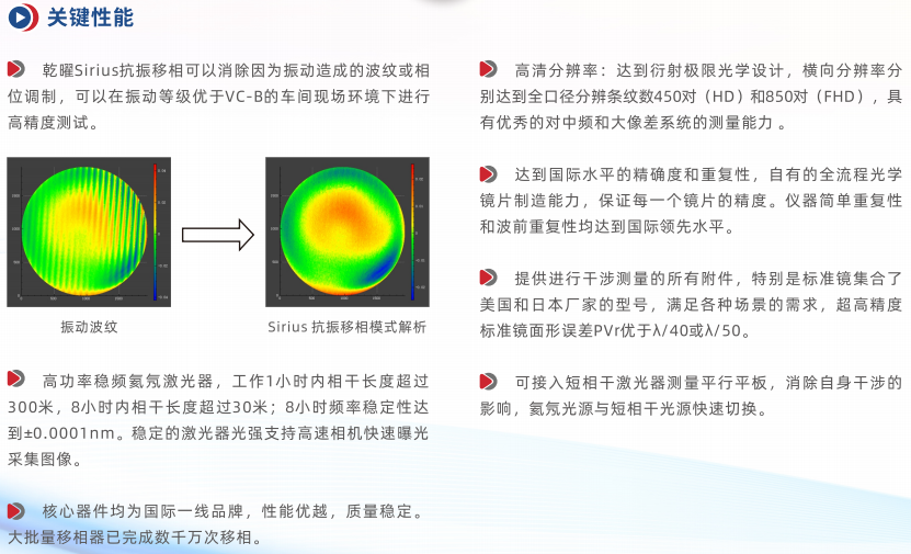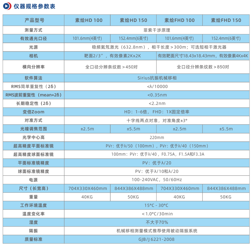 乾曜光学“素绘”系列激光干涉仪命名源于《论语》中“绘事后素”,从本质上追求高品质。“素绘"系列具有达到衍射极限的光学设计、高功率稳频氦氖激光器、400万或1160万像素的相机和使用P1压电陶瓷的超稳定移相器,通过Sirius抗振移相解析软件采集条纹后计算分析,从而实现高分辨率的测量,展示样品表面的中频特征,达到国际领先水平的光学分辨率和测量重复性。"素绘"系列有HD和FHD两种分辨率,光源从632.8nm扩展到紫外266nm到近红外1550nm,结构形式可分为正立式、倒立式、大口径卧式和大口径立式。