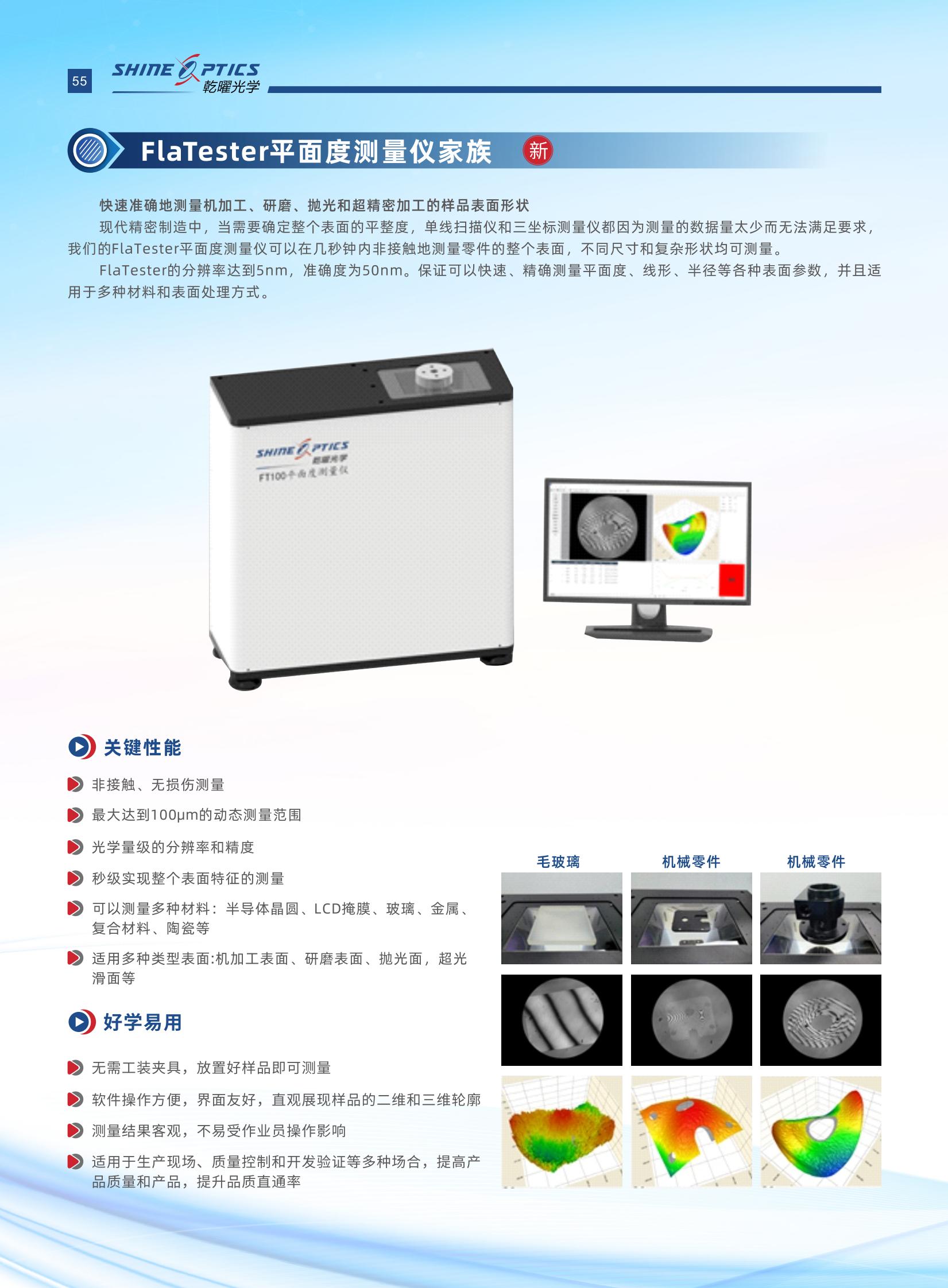 现代精密制造中,当需要确定整个表面的平整度,单线扫描仪和三坐标测量仪都因为测量的数据量太少而无法满足要求,我们的FlaTester平面度测量仪可以在几秒钟内非接触地测量零件的整个表面,不同尺寸和复杂形状均可测量。